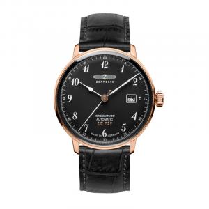 齐博林(zeppelin)德国原装进口商务休闲防水男表真皮皮带全自动机械表男士手表黑盘黑表带7068-2