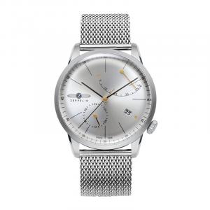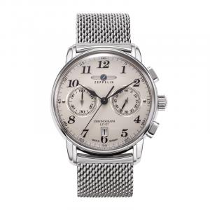 齐博林(zeppelin)德国原装进口商务休闲多功能石英男士手表米白盘银钢带7678M-5