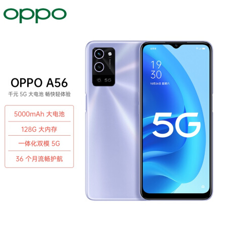 OPPO A56 风铃紫 4+128GB 一体化双模5G 128G超大存储 5000mAh大电池 5G手机 【顺丰包邮】 【延保一年】